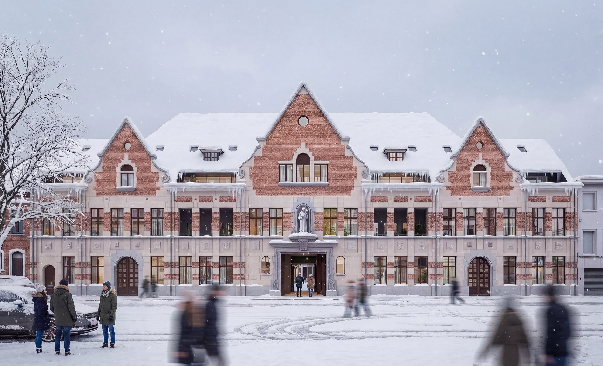 Met Lutgard zijn we toegekomen aan het prachtige oude schoolgebouw van Sint-Lutgardis. Hier ontwikkelen we 19 uitzonderlijke appartementen en 6 unieke woningen rond de oude speelplaats. Een symbiose tussen oud en nieuw: met het comfort van nieuwbouw binnen het karakter van bijna honderd jaar oude gebouwen.